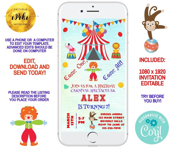 91 Carnival Digital Birthday Invitations. 42 out of 5 stars. Up to 64 cash back These circus invitation templates are customizable.